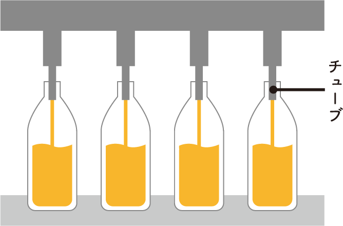 サラダの決め手は、ドレッシング。手作りのドレッシングもいいですが、ここは市販のドレッシングを思い浮かべていただけますか?ソースでもOKです。そうしたいわゆる市販の調味料、あるいはジュースなどのドリンク類の工場で内容物をペットボトルや瓶などへと充填する際、ふっ素樹脂製のチューブが使われています。ふっ素樹脂ならではの滑り性や非粘着性が詰りを防いでいます。