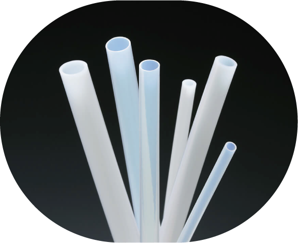 ふっ素樹脂チューブは、滑り性を備えているため汚れにくいのも特徴。なおかつ耐薬品性にも優れ、度重なる洗浄にも劣化しにくいため、食品充填機にぴったりなのです。