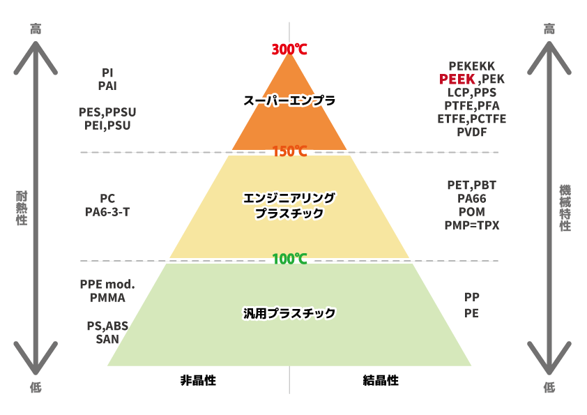 PEEKとは、スーパーエンジニアリングプラスチックに分類されるプラスチックの一種です。