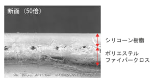 1963年に創業した当社は長年、ガラスクロスにふっ素樹脂を塗布する技術を柱の1つとして成長してきました。そして、2004年にこれまでの技術を生かして、シリコーン樹脂を用いた自動車用サイドカーテンエアバッグ事業に参入。ガラス繊維などのガラスクロスにシリコーン樹脂を塗布する技術を蓄積していくとともに、2019年シリコーン樹脂製の合成皮革製品「C-SKIN」の開発・検討に着手しました。 現在、エアバッグ事業は譲渡したものの、シリコーン樹脂の特徴を知り尽くし、長年にわたり培ったシリコーン樹脂の塗工技術はふっ素樹脂に次ぐ、当社技術の柱となっています。