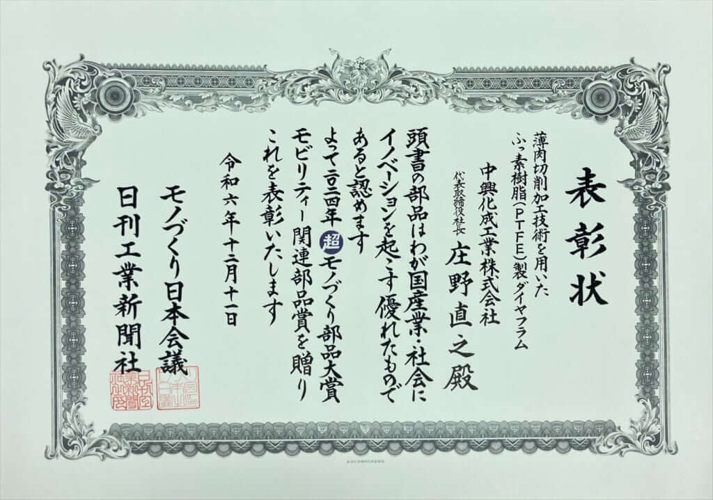この度、当社の「PTFE製ダイヤフラム」が第21回超モノづくり部品大賞において「モビリティー関連部品賞」を受賞しました。この「PTFE製ダイヤフラム」は世界初のピンポイント月面着陸に成功した小型月面着陸実証機SLIMに搭載されています。
