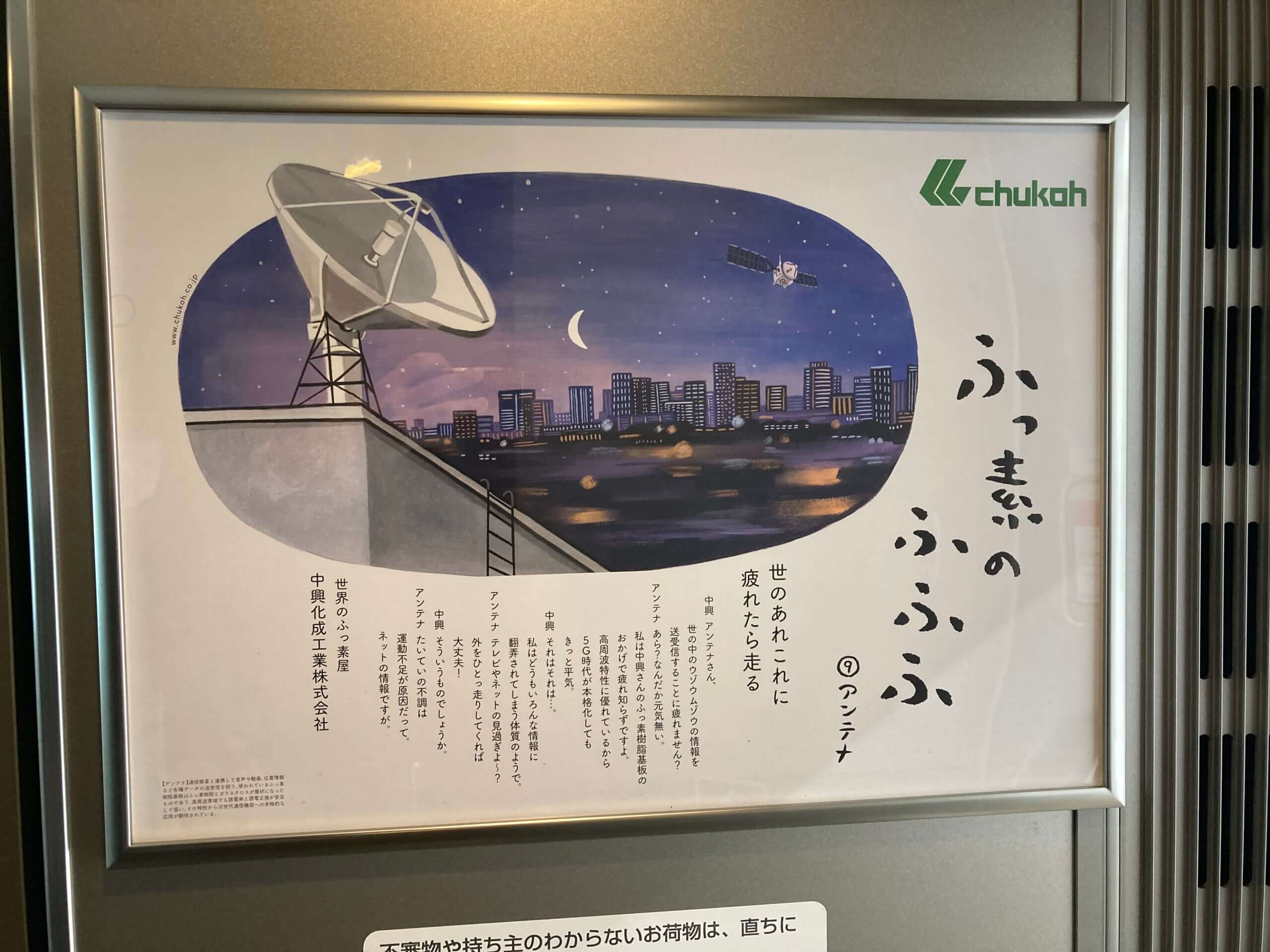 今月はデッキ広告に「ふっ素のふふふ⑨ アンテナ」が掲載されています。
