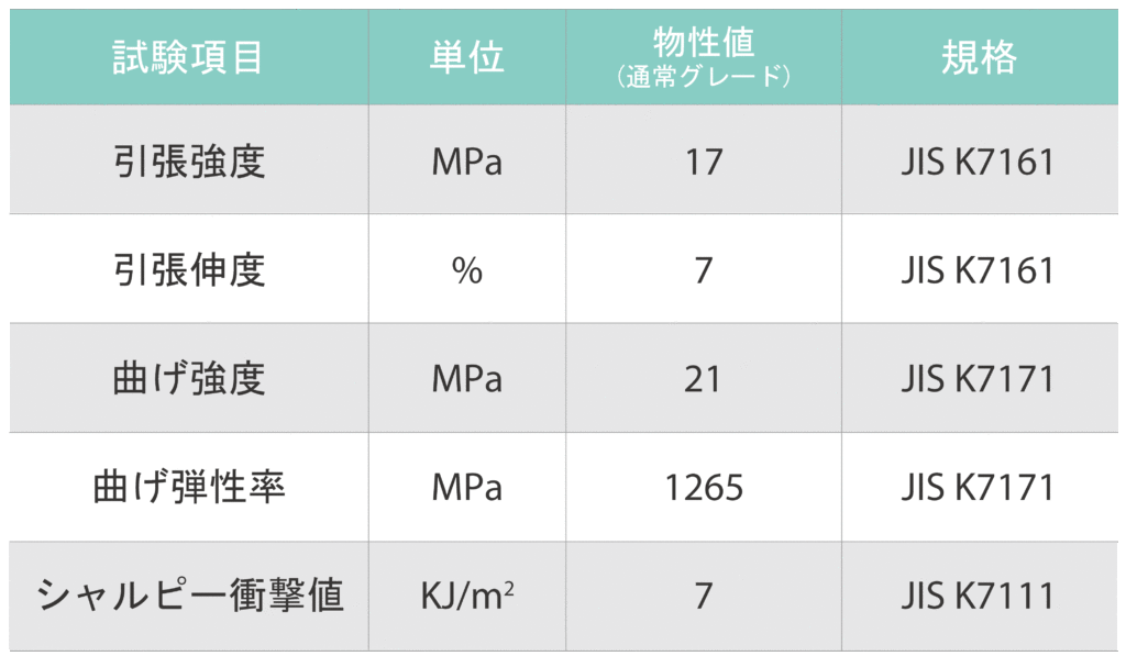 寸法精度が高く、シャルピー衝撃試験においても優れた結果を示しており、衝撃に強い素材です。