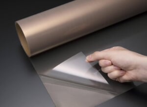 ふっ素樹脂(PFA)フィルムを基材とし、シリコーン系粘着剤を塗布した製品です。ふっ素樹脂の特性に加え、高い透明度を持ち合わせているため、切削クーラントや薬品等を使用する場所で、窓の汚れ防止など透明度が必要な用途におすすめです。