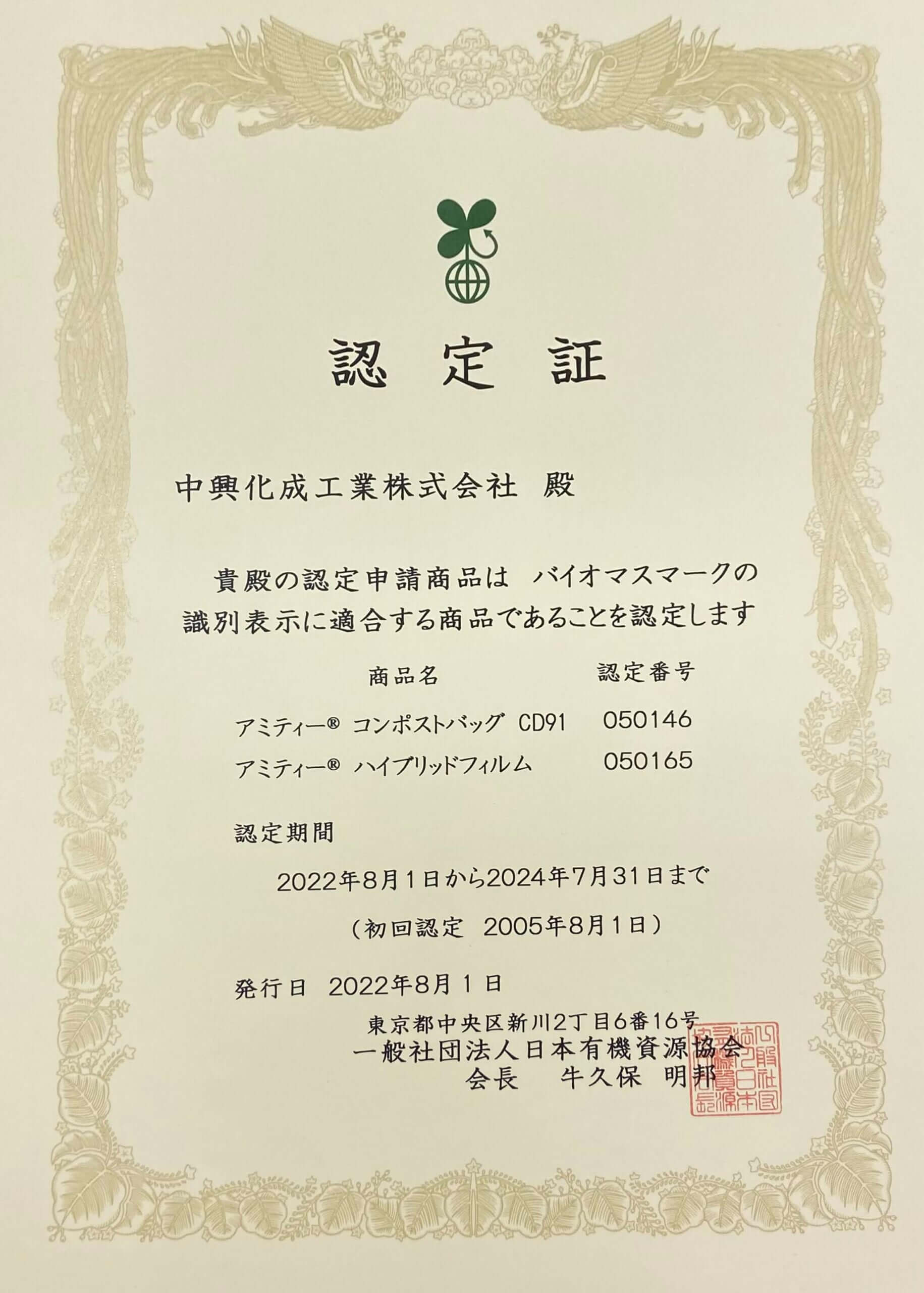 (社)日本有機資源協会が定めるバイオマス商品に対し付与されます。