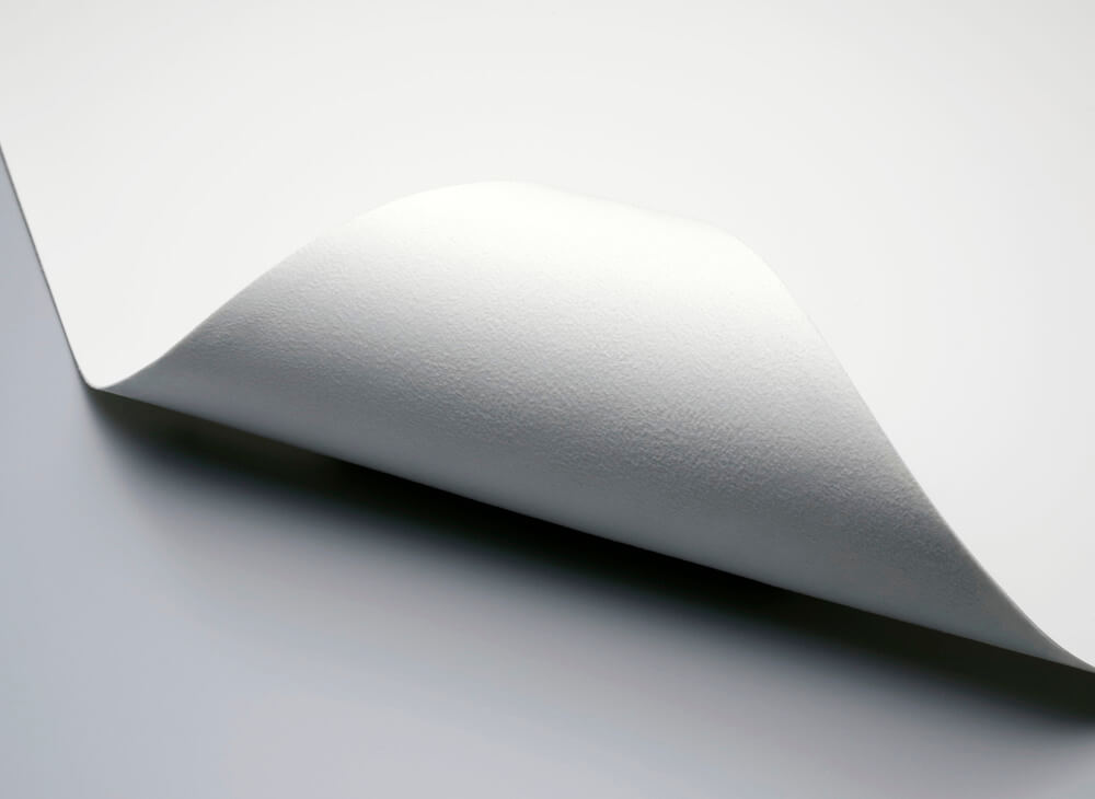 ポリエステルファイバークロスと無溶剤のシリコーン樹脂で構成した合成皮革です。従来の合成皮革にはない耐候性と触感を持ち、本革のようなメンテナンスも不要です。