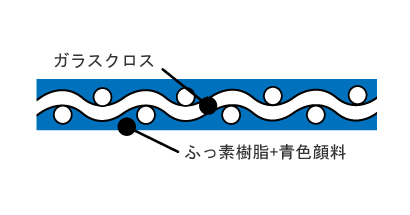 ふっ素樹脂ファブリックを青色に着色した製品です。着色しているため、通常のふっ素樹脂ファブリックと比べて識別されやすい製品です。
