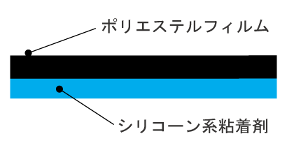 黒色のポリエステル基材にシリコーン系粘着材を塗布した粘着テープです。