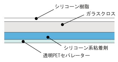 ガラスクロスにシリコーン樹脂をコーティングした粘着テープです。