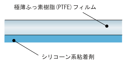 極薄ふっ素樹脂(PTFE)フィルムを基材とし、片面にシリコーン系粘着剤を塗布した粘着テープです。