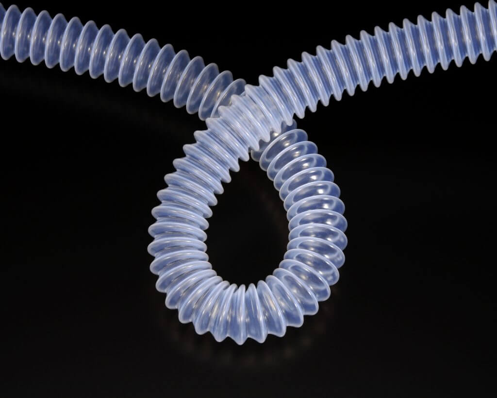 PTFEチューブにらせん形状の溝をつけたホースです。