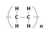 フッ素樹脂の代表的な原料であるPTFEはその分子構造から様々な特性をもっています。下記はポリエチレン樹脂(PE)とフッ素樹脂(PTFE)の分子構造になります。